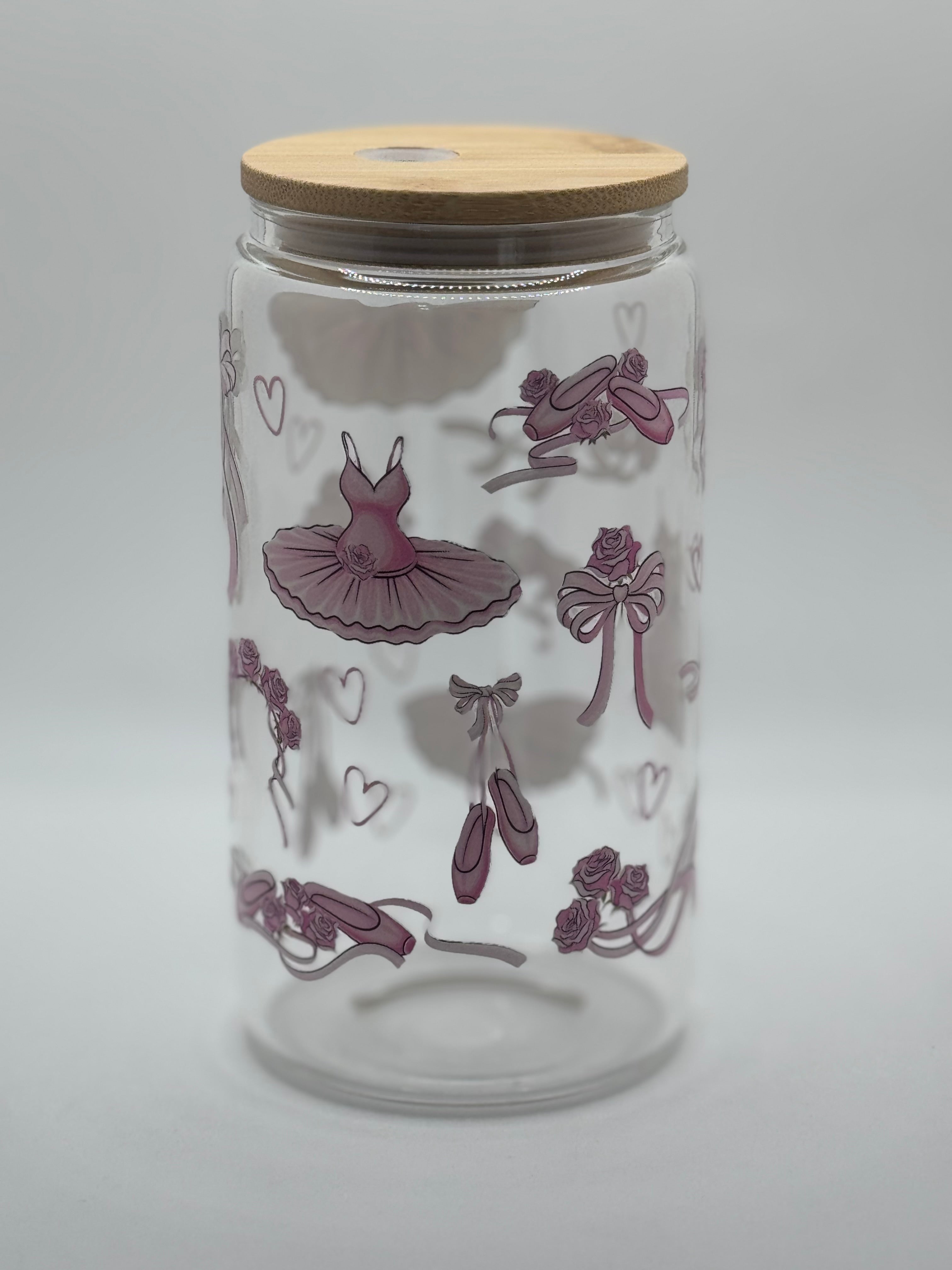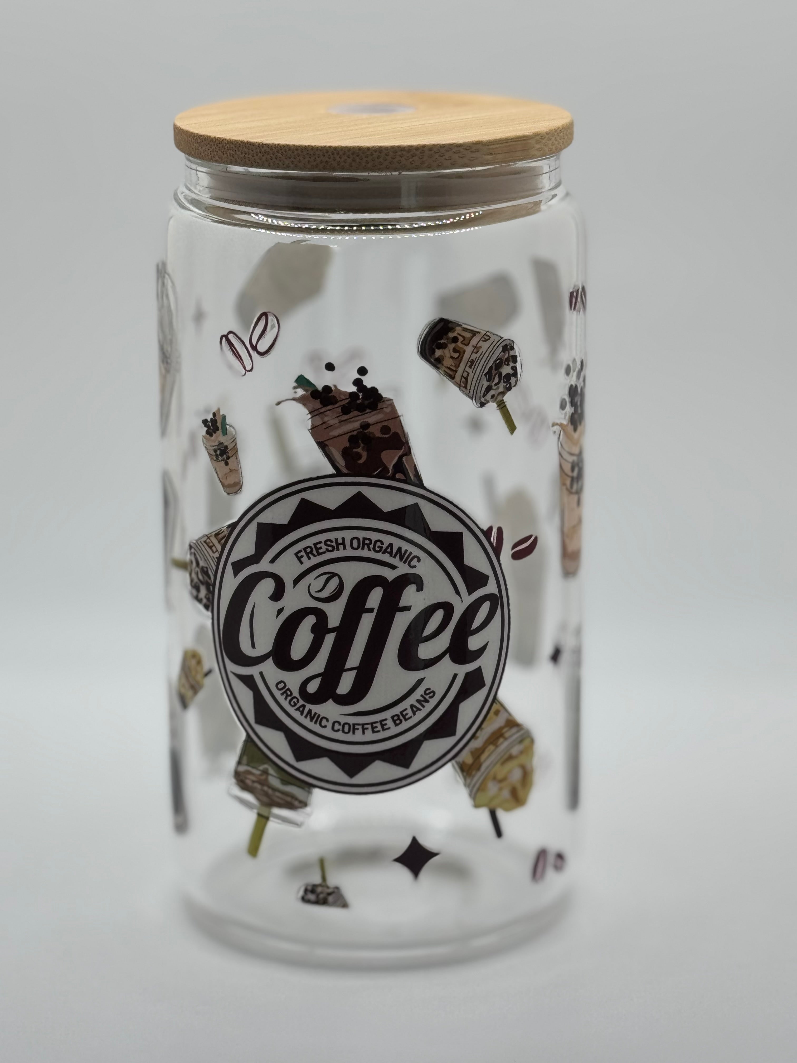 16oz glass tumbler bamboo lid w/ glass straw